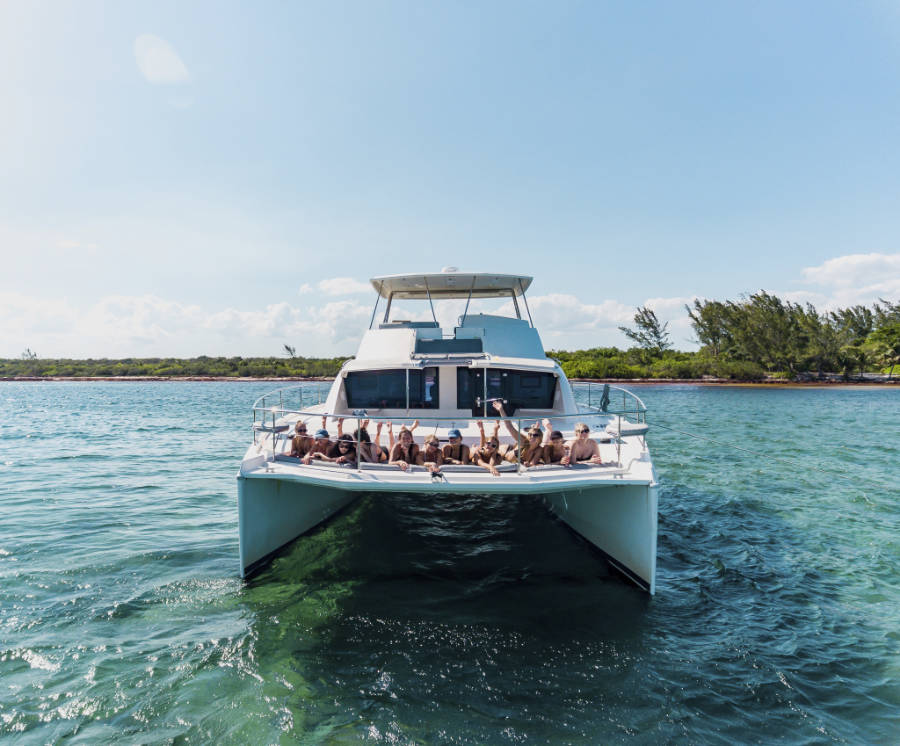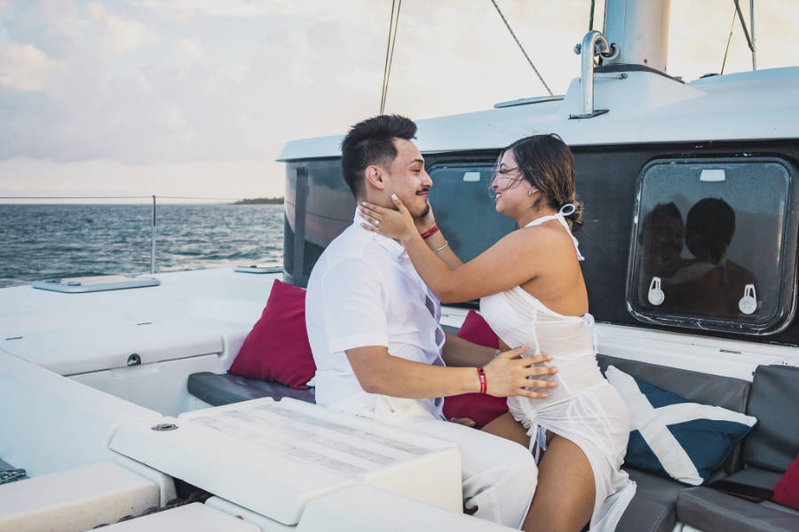Why choose the day before the wedding? Not only is it a perfect way for your guests to know each other better before the big day, but it is also a creative way for them to get to know the best of the Mexican Caribbean. Imagine sipping champagne under the golden sun, sharing laughter, and crafting stories that will be recounted for years to come. A midmorning or afternoon sail allows everyone to arrive fresh and ready to enjoy all. Being on the water is the perfect way to allow all the guests an early evening.
